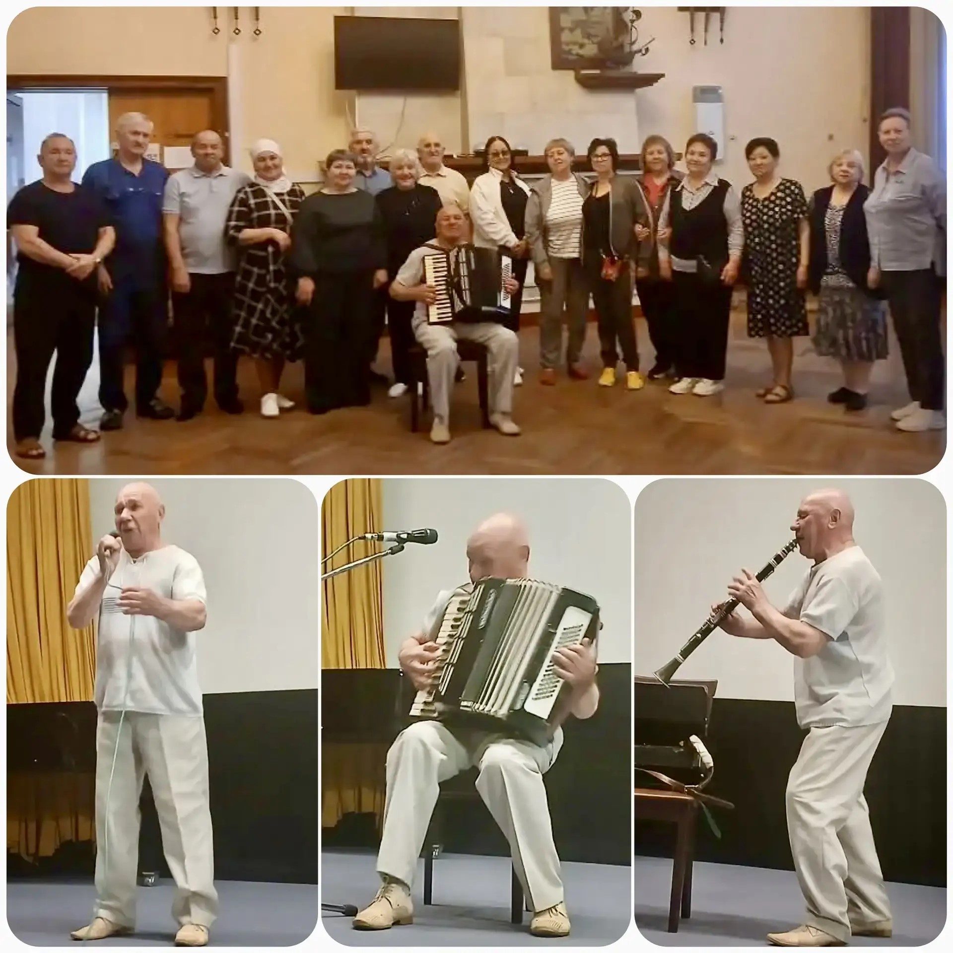 Стены нашего санатория наполнились редким, но неизменно любимым публикой жанром — ритмами военной музыки. В этот вечер Виктор Владимирович предстал не просто как певец, а как настоящий виртуоз: в его руках оживали кларнет и аккордеон.