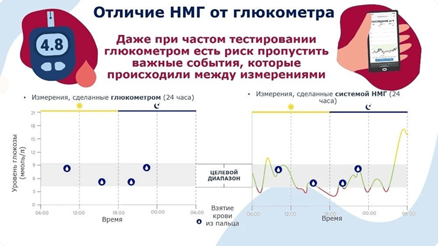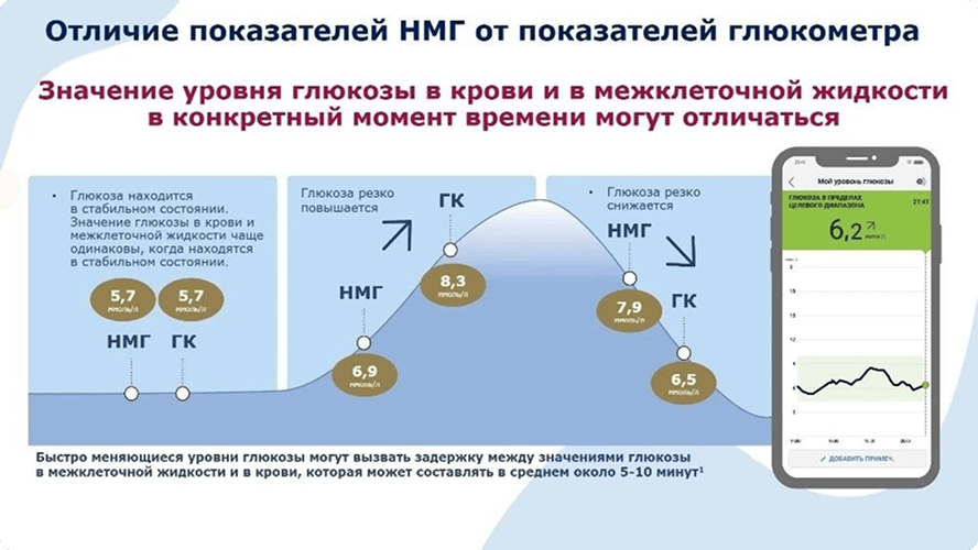 Если раньше контроль сахара крови был похож на попытку понять сюжет фильма, увидев лишь несколько случайных кадров, то НМГ дают нам полнометражную картину в реальном времени. Это действительно революция: один маленький датчик избавляет от множества болезненных проколов, превращая эпизодические измерения в удобный, непрерывный поток данных. Мы видим не просто точку — цифру «сейчас», а целую линию жизни — тренды, подъемы и спады.